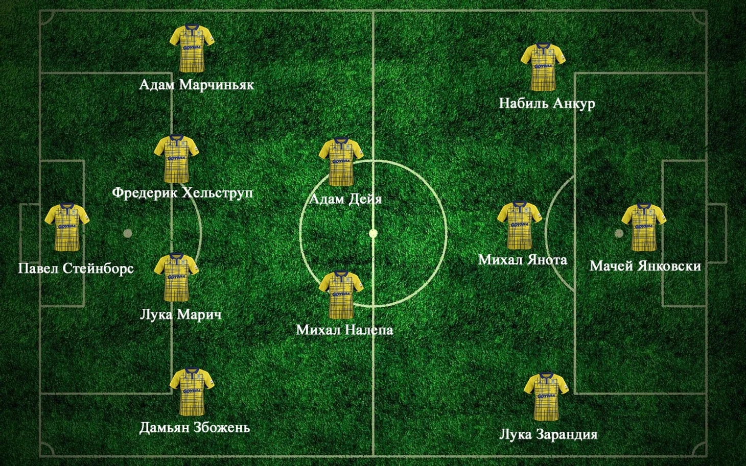 Кто готов повести за собой: «Арка» обладает одним из лучших польских атакующих дуэтов в лиге, который образуют Мацей Янковски и Михал Янота. Последний является третьем игроком во всей Экстракласе по индексу InStat, уступая только Душану Куцьяку и Тарасу Романчуку. Игра Михала Яноты не прошла мимо глаз болельщиков и функционеров. В декабре именно полузащитник «Арки» получил награду лучшего игрока месяца. На двоих дуэт Янковски - Янота забил уже шестнадцать мячей (по семь и девять голов соответственно). Еще одним лидером «Арки» является грузинский легионер Лука Зарандия. В матчах с участием гдынян невозможно не обратить внимание на дриблинг грузина. По количеству попыток обводки (171) и удачных обводок (97) Лука лидируют в Экстракласе. Вряд ли в Гдыне кто-то в последнее время тревожится и о последнем рубеже. Уже на протяжении 64 последних туров Павел Стейборс защищает ворота «желто-синих» без замен, на данный момент это самая длинная серия в Экстракласе. Еще один футболист «Арки» вошел в историю Экстракласы. Матеуш Млыньски забил во Вроцлаве мяч в ворота местного «Слёнска» и стал первым автором гола, родившимся в XXI-ом веке.