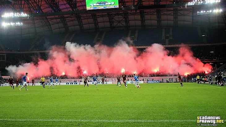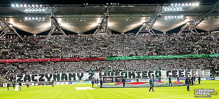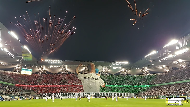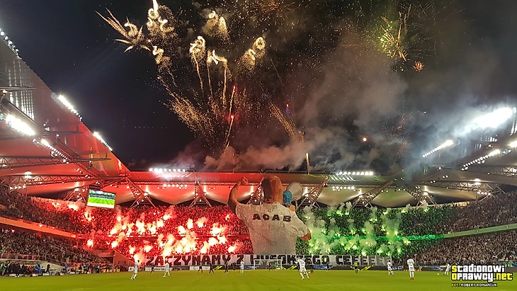 Куда же в обзоре фанатских трибун без варшавской «Легии». Варшавяне вновь поразили весь фанатский мир своей оправой. До начала встречи на жилете появился баннер "Начинаем с высокого CEEEEE", отсылающего к одному из зарядов «легионистов». Что происходило потом, лучше вам самим увидеть на видео.