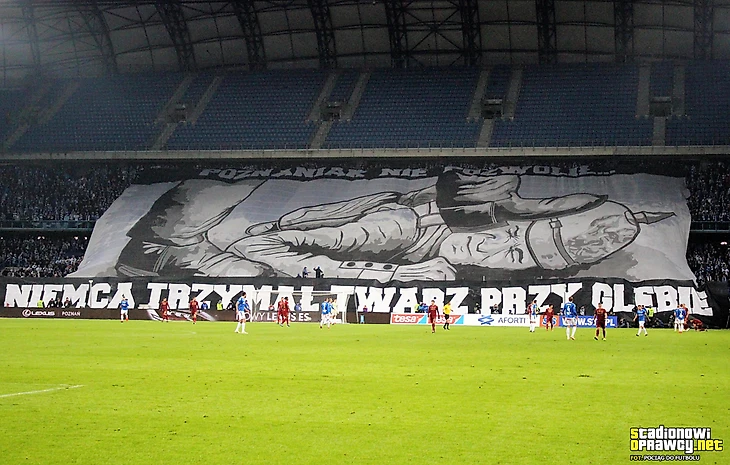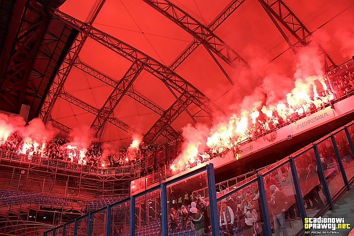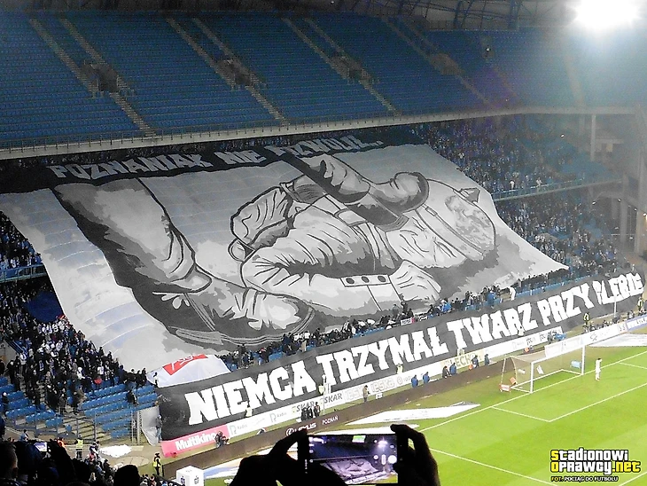 23-ый тур уже был не таким богатым на оправы. В субботу прошла польская классика. Пиротехника начала гореть еще до матча. Хозяева в первом тайме продемонстрировали перф, посвященный окончанию Велькопольского восстания «Познанец не позволил...лицо немца держал рядом с землей».