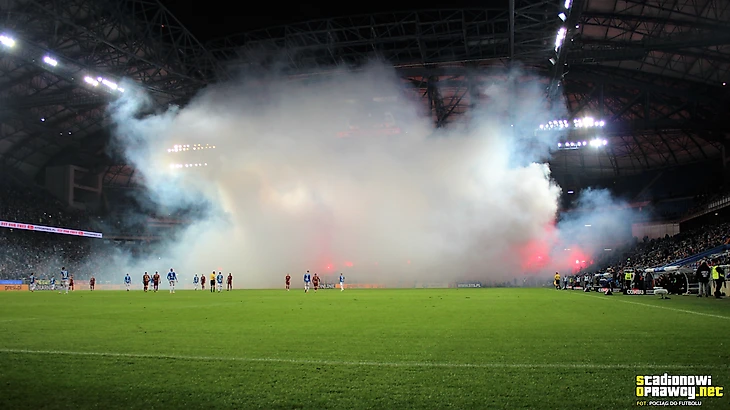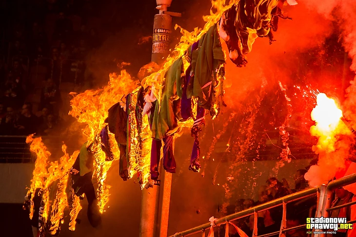 Гости сожгли несколько шарфов познаньцев и зажгли пиротехнику в начале матча.
