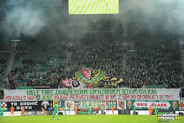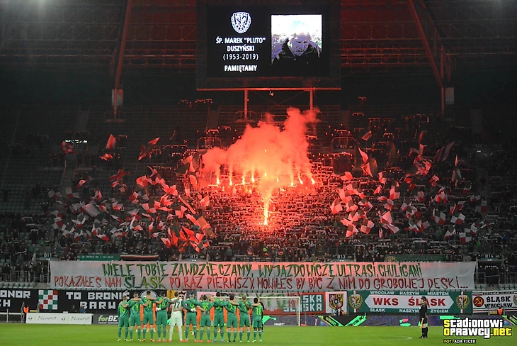 Нижнесилезское дерби проходило без фанатов «Заглембе». Хозяева подготовили баннер и зажгли крест из пиротехники в память об умершем фанате «Слёнска». Надпись на баннере "За многое тебе благодарны, выездюки, ультрас, хулиганы. Показал нам «Слёнска» впервые, говорил быть с ним до гробовой доски..."