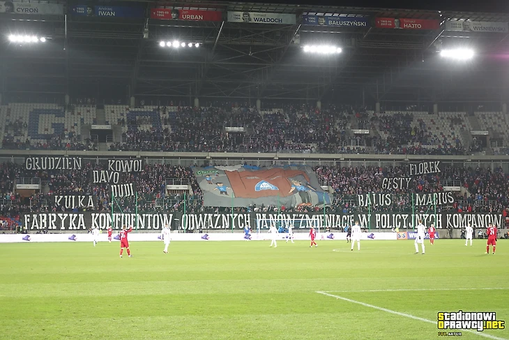 «Краковия» - «Ягеллония». Хозяева провели акцию, целью которой было собрать на матче 10 тысяч человек. Акция закончилась успехом. На центральной трибуне появилось большое количество бело-красных флагов и баннер «Нужно иметь характер и из стали нервы...чтобы неуклонно находится вместе с ней без перерывов.»