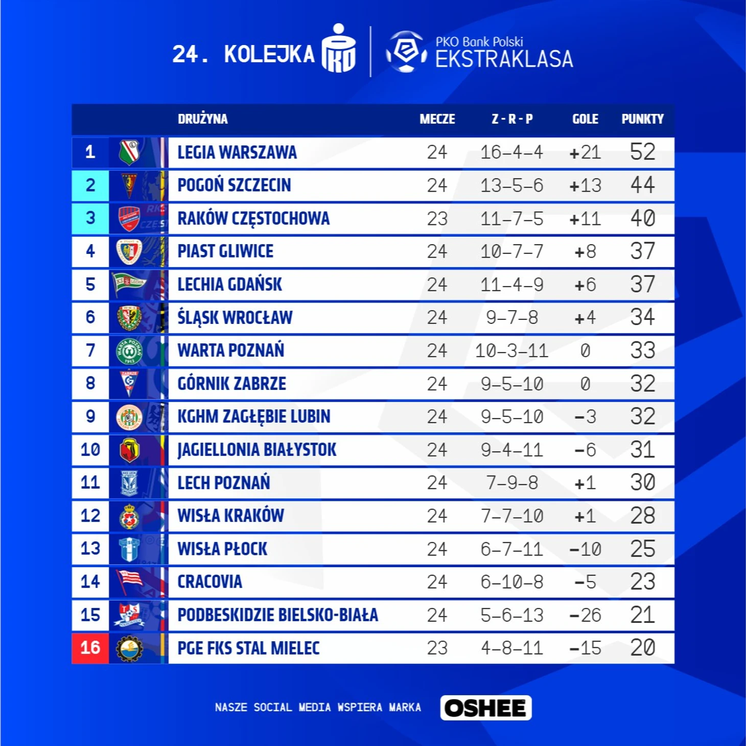 В главном матче тура команды так и не смогли поразить ворота друг друга, варшавян это вполне устроило, единственное, что этим прервалась их шестиматчевая победная серия. «Лех», набрав одно очко, опустился еще ниже, познаньцы заканчивают 24-ый тур на 11-ой строчке, так низко «железнодорожники» не были уже давно.