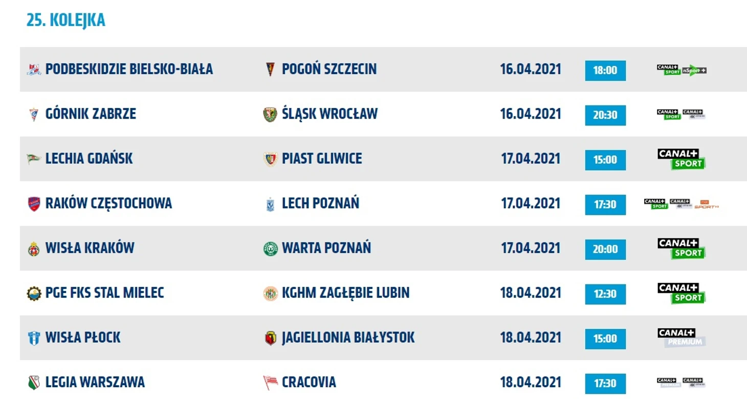 Тур открывал матч в Белостоке между командами, которые перед стартом сезона собирались бороться за еврокубки, но сейчас обе погрязли в нижней половине таблицы. Михал Пробеж же вернулся в город, где завоевывал с «Ягой» её главные успехи (серебро чемпионата и кубок страны).
