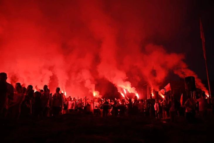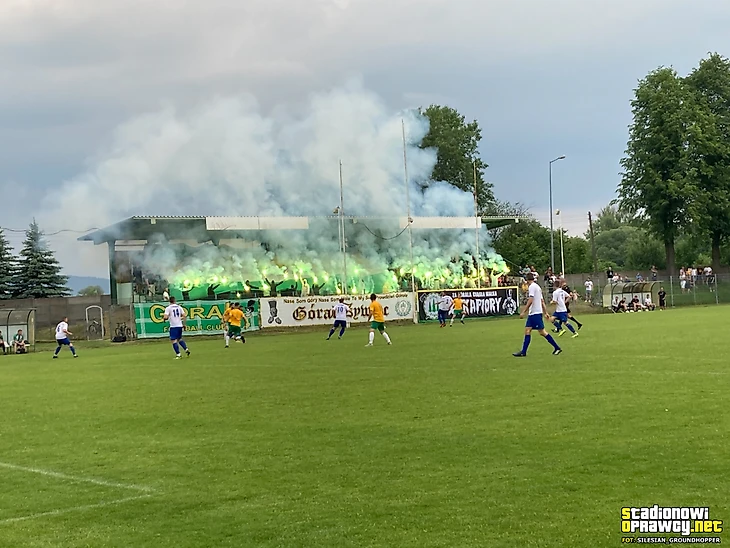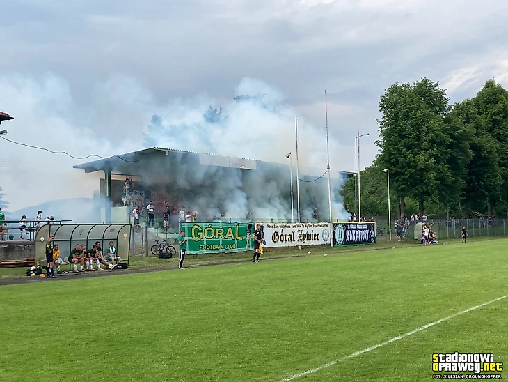 Дерби Живеца в шестом дивизионе между «Гуралом» и «Кошарава». Фанаты хозяев пожгли пиротехнику в цветах любимого клуба.