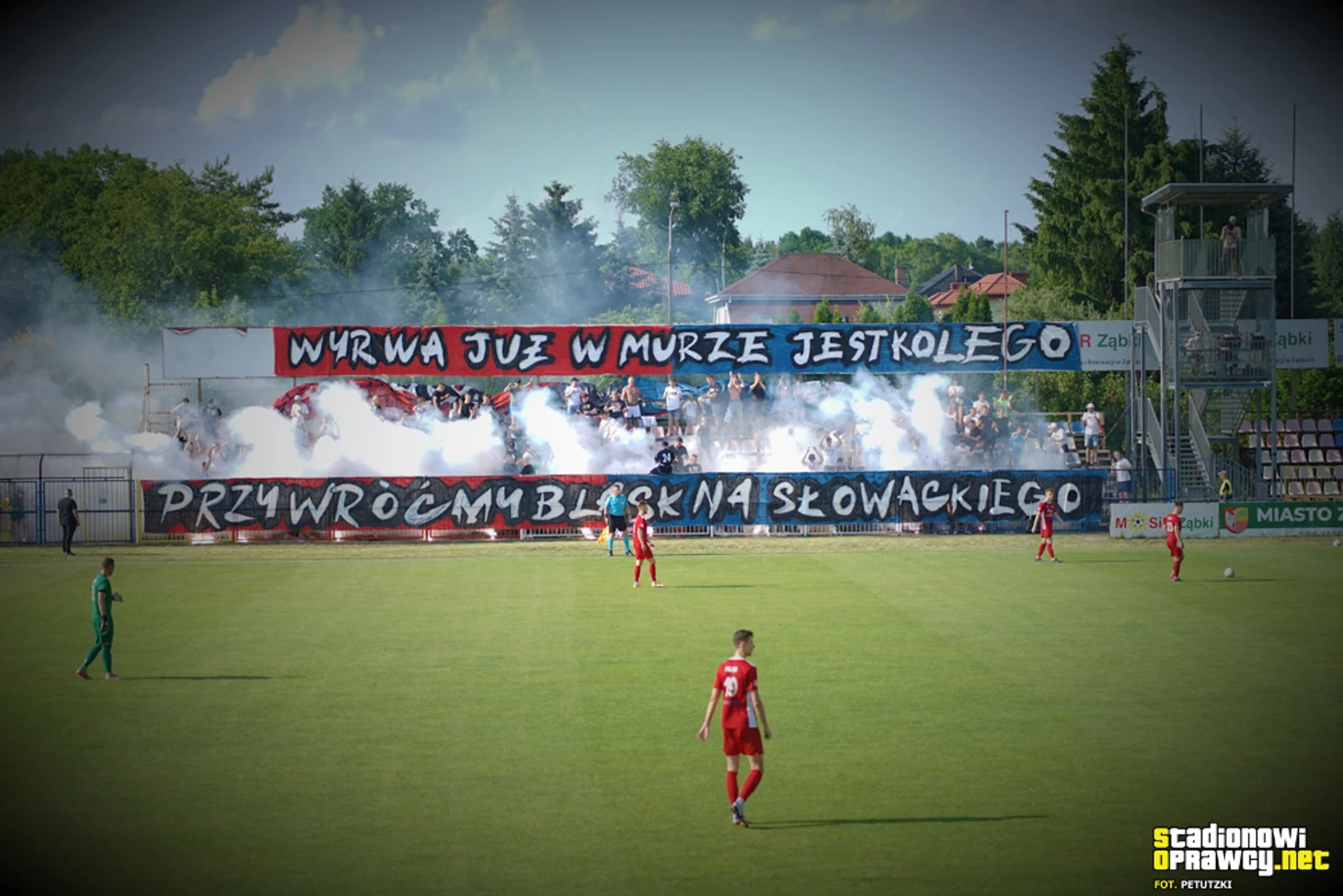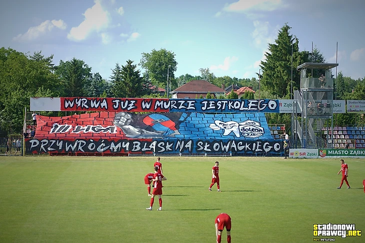 Фанаты «Дольцана» Зомбки на матч против «Пилицы» за повышение в III-ую лигу подготовили оправу «Дыра в стене уже есть, друг, вернём свет на Словацкого». Игроки запал своих фанатов не поддержали и уступили в решающем матче.