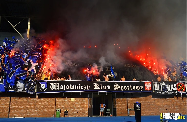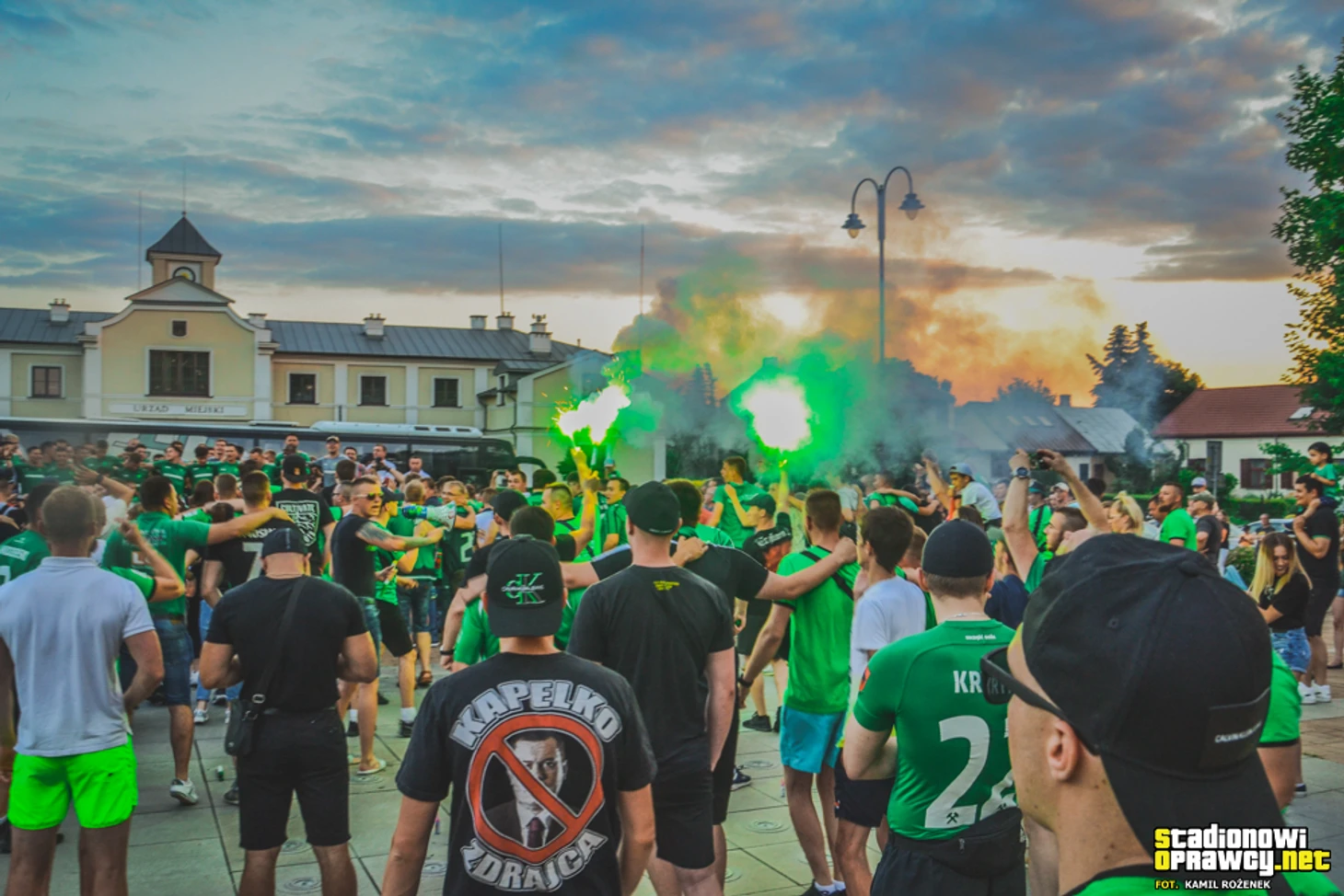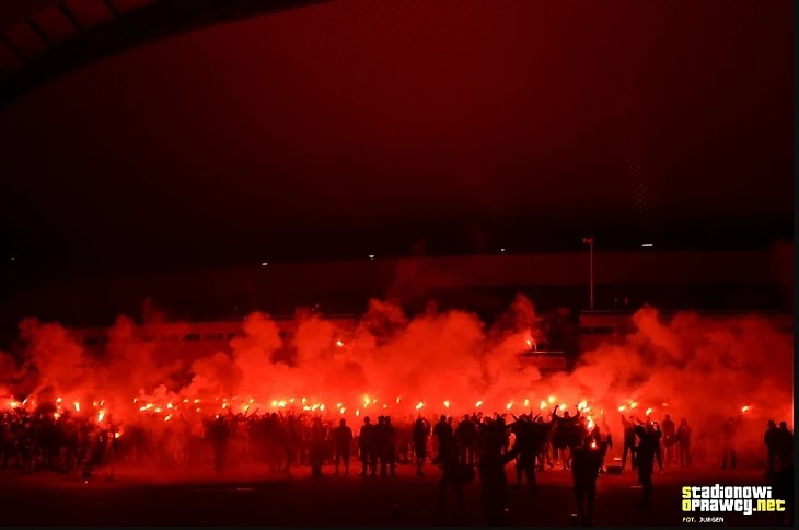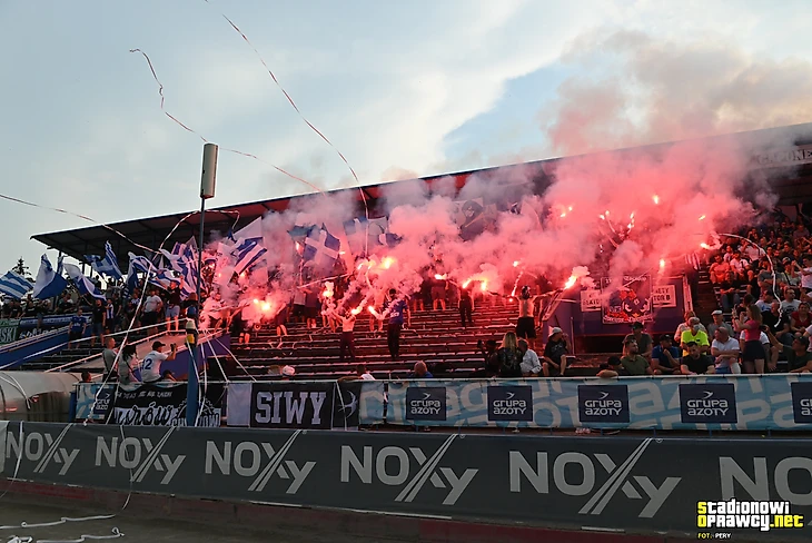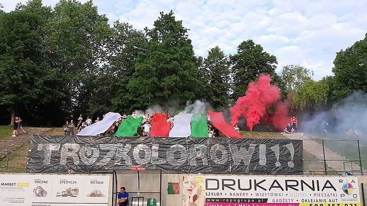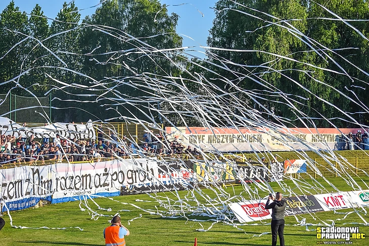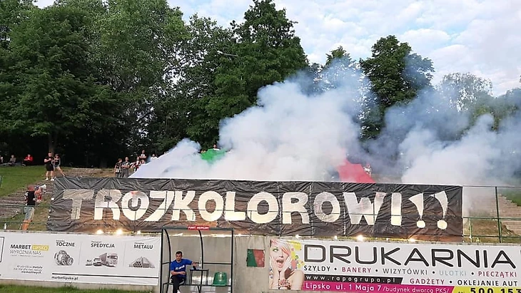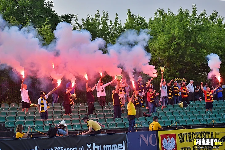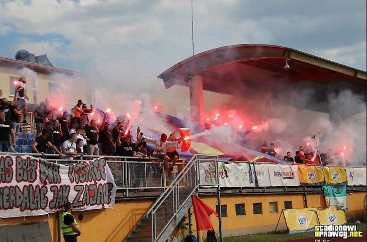 И снова региональный кубок Польши, на этот раз в Подкарпатском воеводстве. Фанаты «Стали» Сталёвой Воли пожгли пиротехнику на матче против «Вислоки».