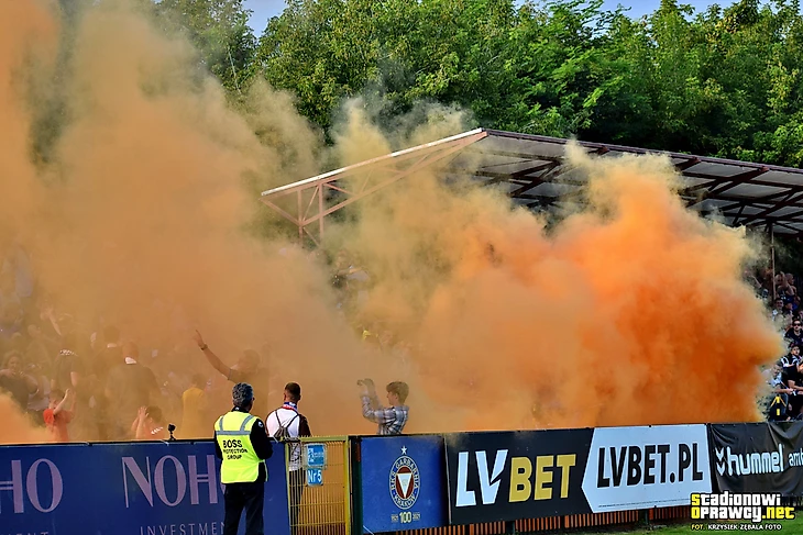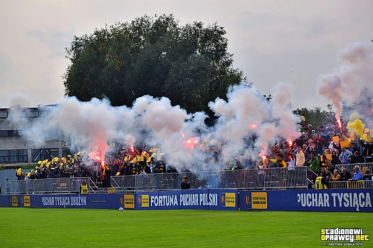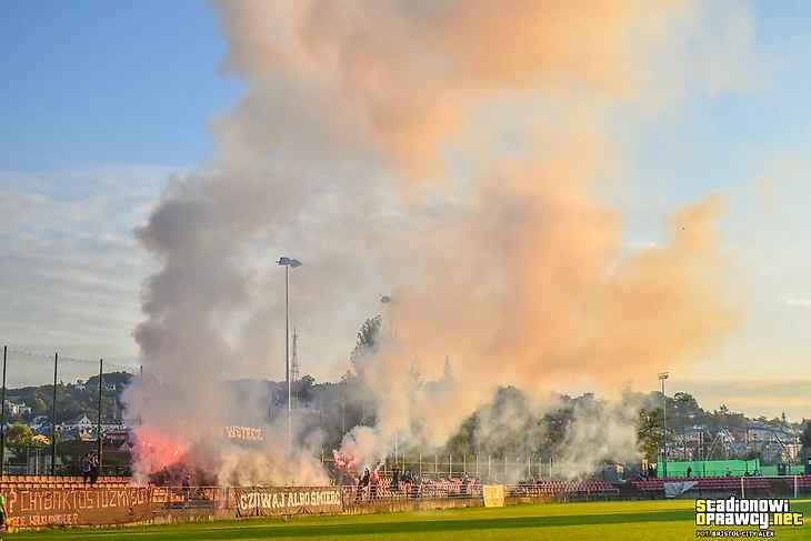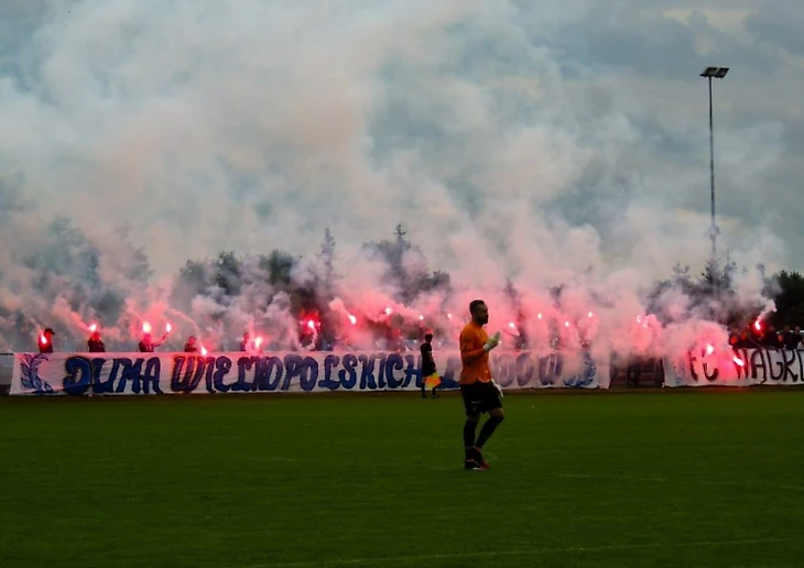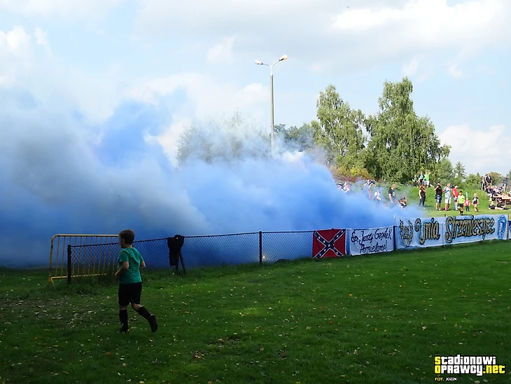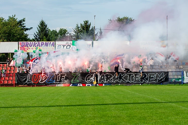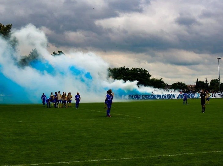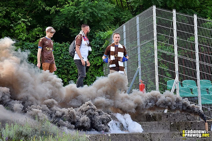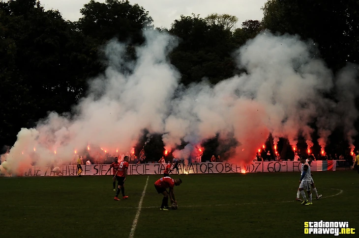 В матче пятого дивизиона между двумя «Униями» фанаты хозяев из Домьровы Гурничей неплохо подымили.
