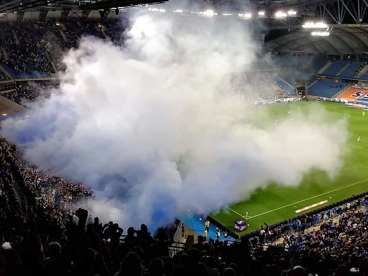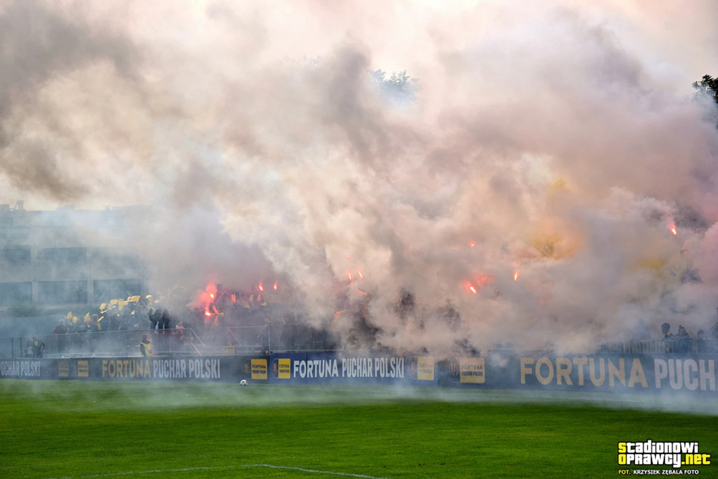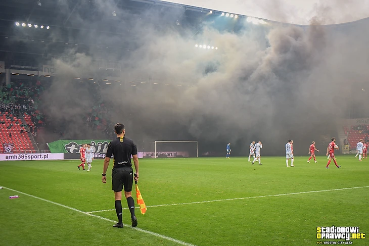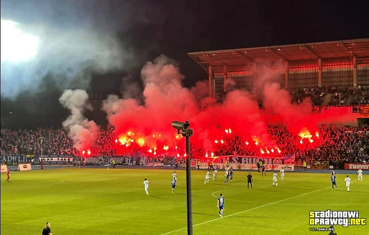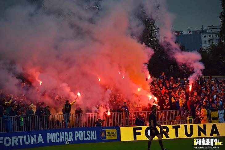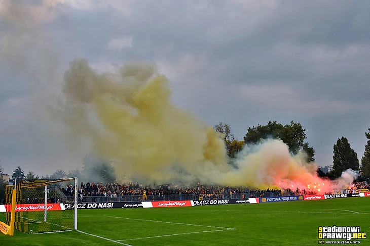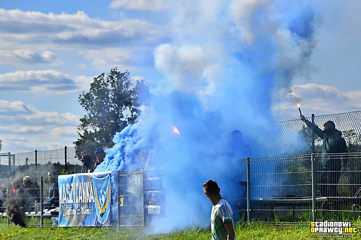 В матче пятого дивизиона между двумя «Униями» фанаты хозяев из Домьровы Гурничей неплохо подымили.