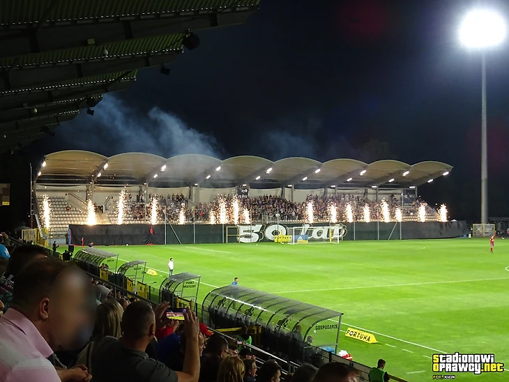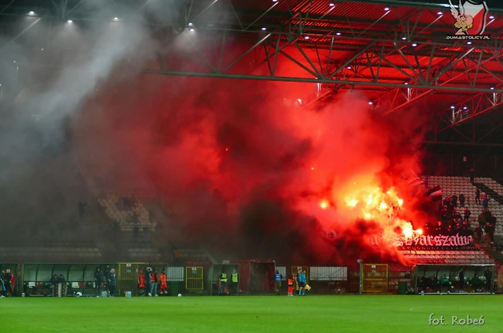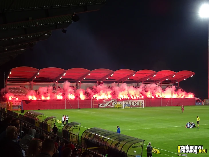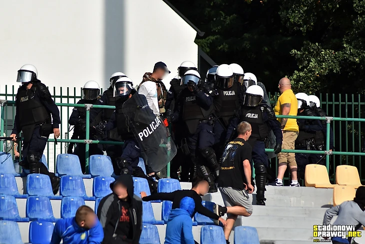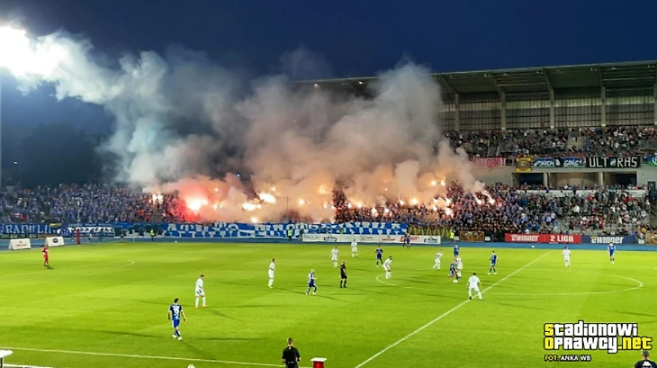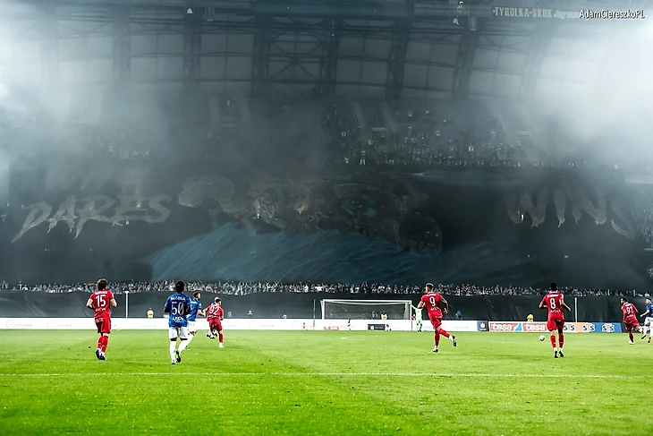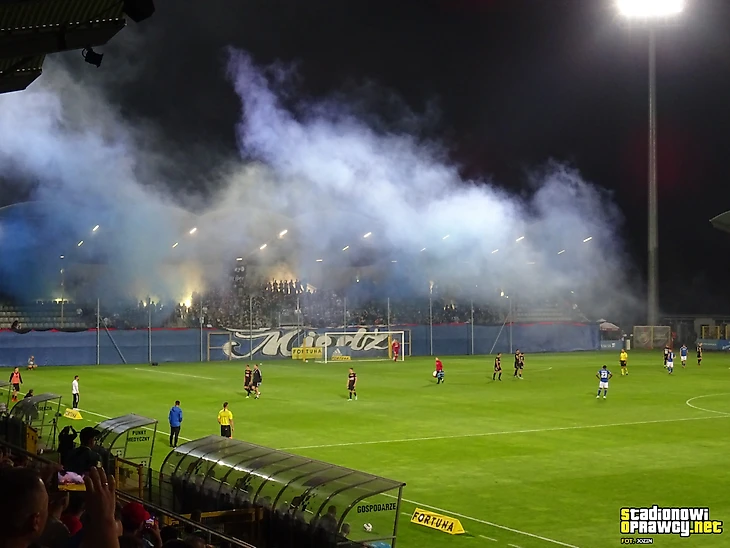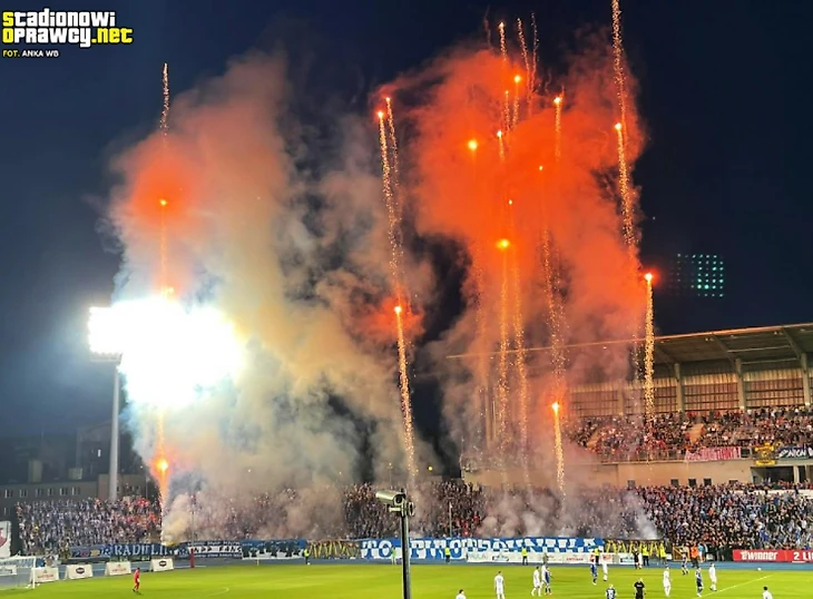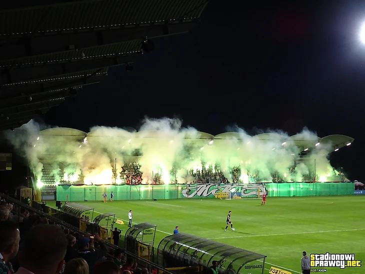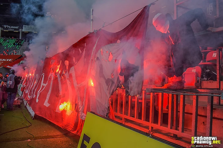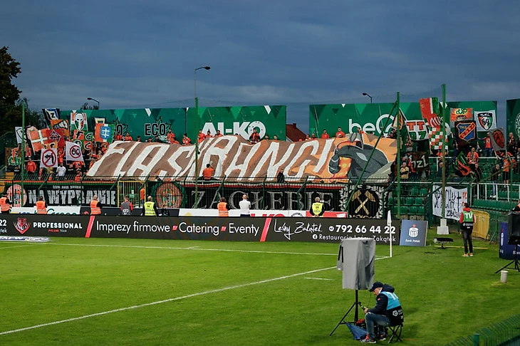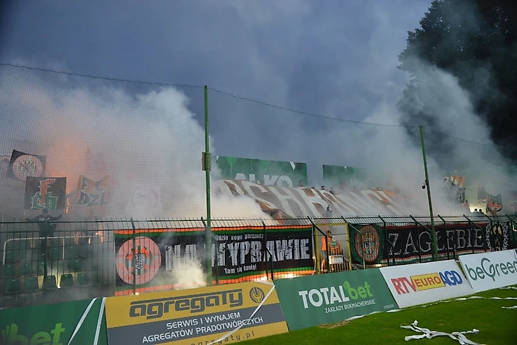 Фанаты любинского «Заглембе» приехали в Гродзиск Велькопольски к «Варте» с небольшой оправой и небольшим количеством пиротехники.