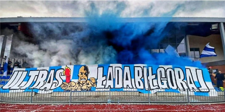 Фанаты билгорайской «Лады» с незамысловатым перформансом на матче 5-ого дивизиона.