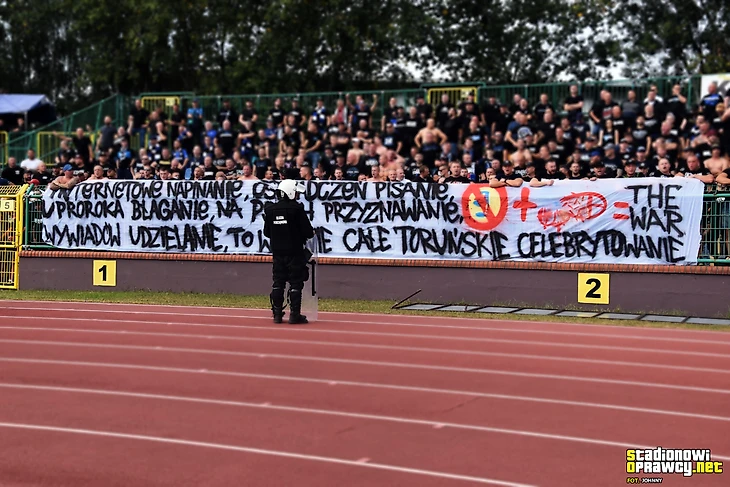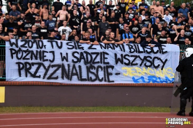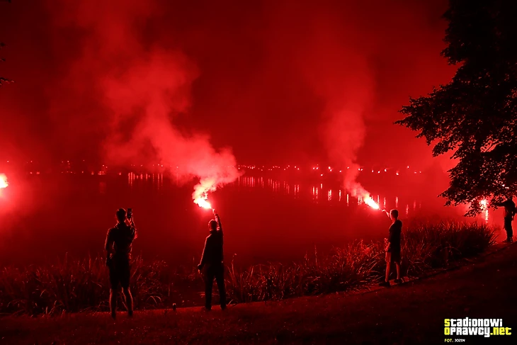 К сожалению, дерби прошло без оправ, зато в течение всего матча звучали заряды в адрес друг друга, на обоих секторах появились баннеры в сторону своих врагов. Из Быдгощи на матч приехало около 700 фанатов «Завиши». На поле тоже было жарко - 2:2.