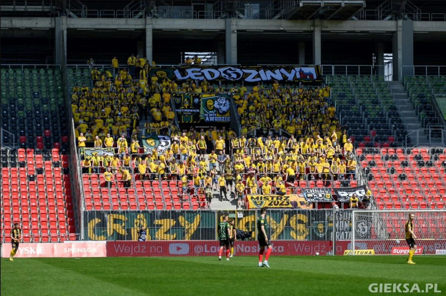 Гости приехали в Горлице, но на трибуны так и не попали, поэтому поддерживали своих футболистов из-за забора.