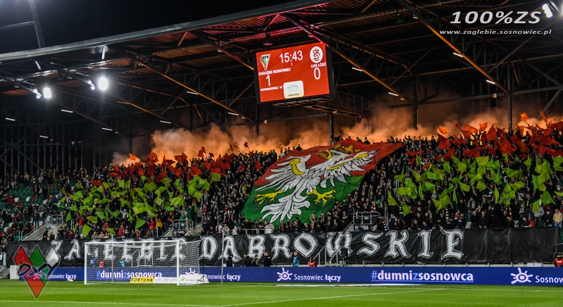 В Сосновце встречались «Заглембе» и «ЛКС». Фанаты хозяев продемонстрировали перформанс «Домбровское Заглембе».