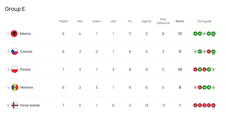 Полякам осталось провести всего один матч в рамках отбора. 17-го ноября «бяло-червони» примут чехов, которые сейчас опережают поляков в турнирной таблице на одно очко, однако чехи имеют еще один матч в запасе - домашний поединок с Молдовой, поэтому даже победа с любым счётом над Чехией может оставить Польшу за бортом прямого выхода на Евро.
