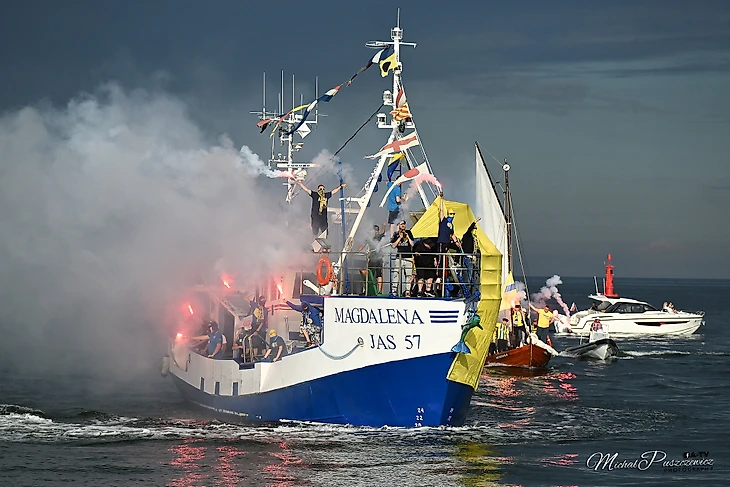 К болельщикам на «Магдалене» присоединилось немало единомышленников. И в пятницу 25-го июля сразу несколько суден прошло путь с полуострова Хель через Пуцкий залив в Гдыню.