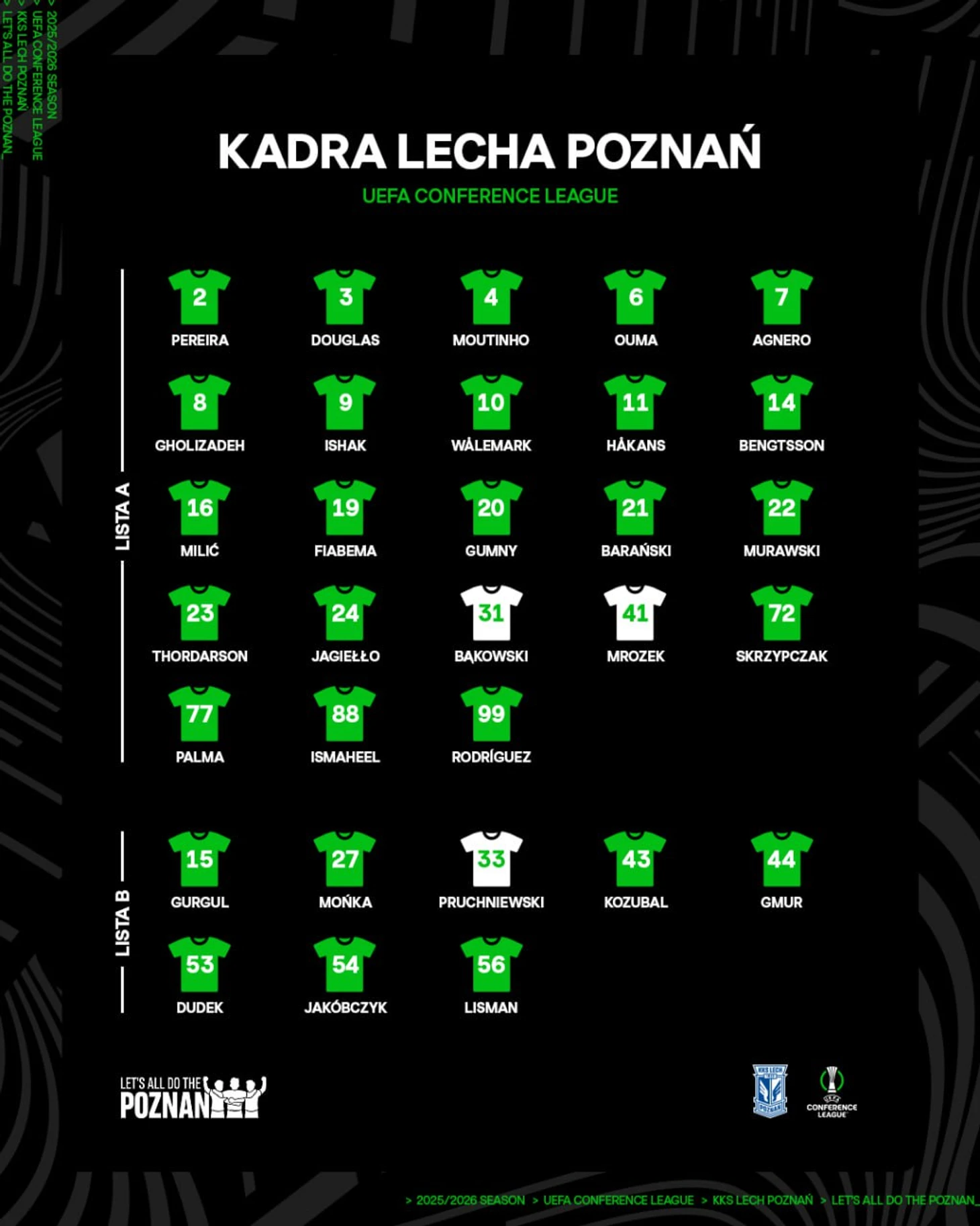В заявку «Леха» попали все сильнейшие, даже Даниэль Хаканс и Патрик Валемарк, возвращение которых из лазарета планируется лишь в конце календарного года. Форсировать их возвращение после череды травм летом вряд ли кто-то будет, но включение в заявку – хороший знак.