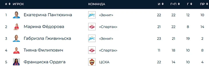На данный момент Екатерина Пантюхина и Марина Федорова набрали по 22 балла, причем десятка «Спартака» проводит лучший сезон в карьере. У Габи — 21 балл. Одно результативное действие любой из этих футболисток может не только помочь команде завоевать заветные медали, но и вывести их на первую строчку в гонке по голевым действиям.