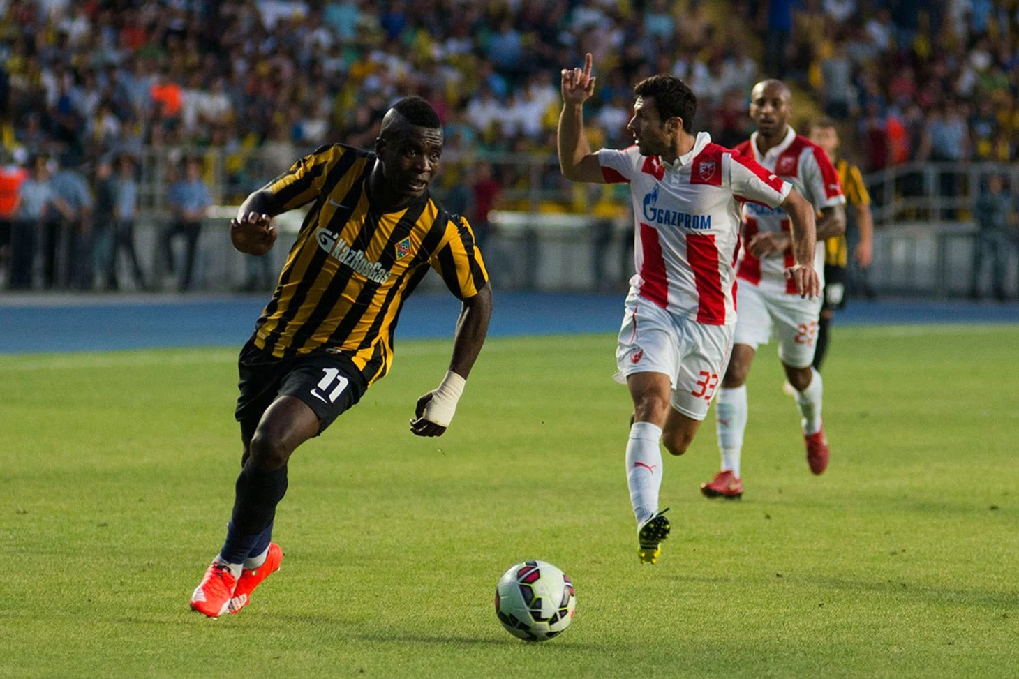 В нем выпало играть с сербской «Црвеной Звездой». Первый матч состоялся в Алматы и закончился победой хозяев (2:1), а теперь желто-черные готовятся к трудному ответному поединку: свое поле для этого предоставил принципиальный соперник «звездашей», «Партизан».