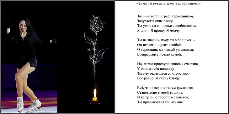 Знаете, Лена, я очень давно болею за Лизу. И для меня Лиза на льду и Лиза в жизни - как будто 2 стороны медали. Не в том смысле, что плохая и хорошая/черная и белая, а... даже не знаю, как объяснить, думаю, Вы понимаете... Она просто такая - разная, разносторонняя. Она может быть острой зажигалкой, сексуально и свободно танцевать танго, саркастично шутить и в то же время... абсолютно естественно, искренне и по-доброму смотреть на мир. Удивительная девушка!