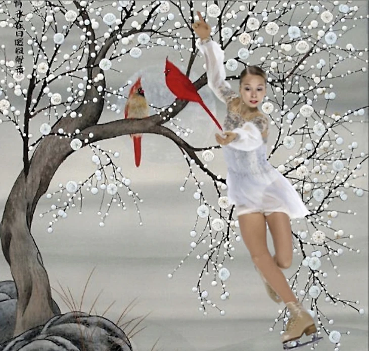 Прекрасные праздничные картины-открытки! Саша Трусова и вправду тигрица! Лиза сама по себе всюду праздник, а с Вашими ассоциациями этот позитив ещё ярче! Благодаря коллажу сейчас наконец поняла, как платье Алёны к "Зиме" с этой самой зимой соотносится) До этой картины у меня, если честно, совсем не читались отсылки платья к программе, а вот здесь хорошо))