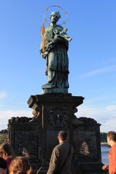Архиепископу связали руки и ноги и сбросили в пучину вод. Когда он ушел на дно, над местом его гибели внезапно вспыхнули пять звезд. Это указывало на святость Непомука. Впоследствии его официально причислили к лику святых, а мост ныне украшает статуя Яна Непомука и барельеф с изображением сцены его казни. На месте же, где он был сброшен в воду, в каменные перила вделаны пять металлических звезд. Кстати, есть поверье, что если приложить руку к барельефу или дотронуться до медного креста у статуи убиенного архиепископа и при этом загадать желание, то оно сбудется. Между прочим, этот святой с давних времен считается в Чехии покровителем влюбленных.