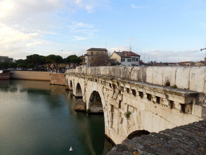 Примечательно и то, что в годы Второй мировой войны Римини подвергался сильным бомбёжкам, очень много зданий и сооружений было разгромлено. Мост Тиберия тоже бомбили, но удивительное дело — ни один снаряд не попал в него, они шли по касательной, мост остался целёхеньким. Так рассказывают сторожилы этого города.