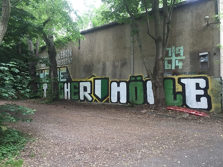 Стадион находится на окраине района и сразу за одной из трибун начинается лес. Кроме шуток: за одной трибуной классические немецкие «дачи» а за другой густая чаща. Лес вообще играет важную роль в жизни клуба: начиная от эстетики используемой при производстве всяческих футболок и шарфов и заканчивая тем, что на одной из трибун растут сосны и ели.