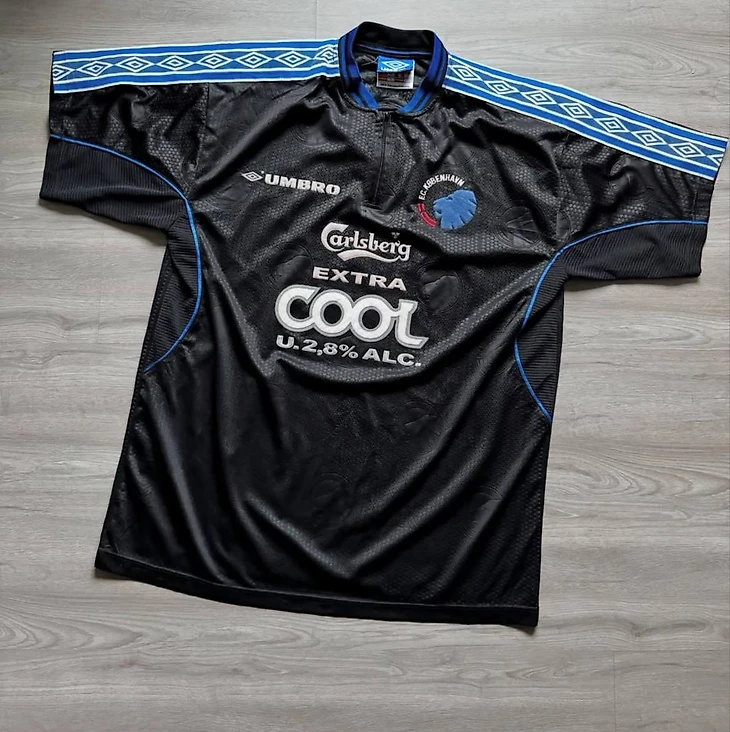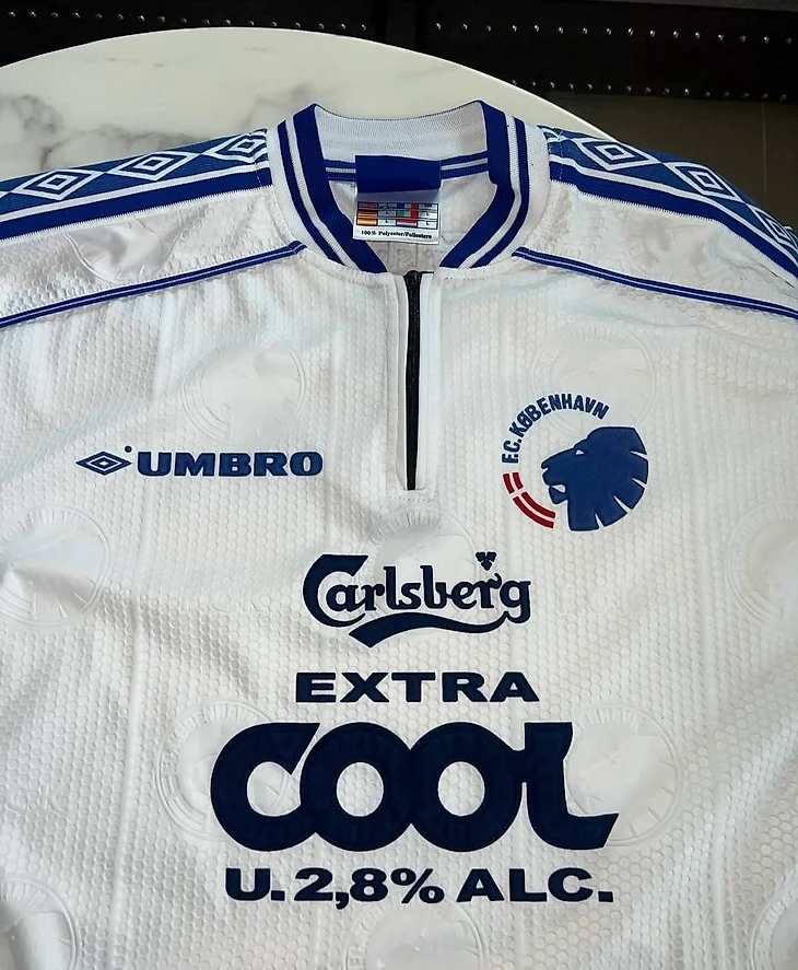 Это была первая футболка с логотипом пивоваренной компании Carlsberg, тк спонсорский контракт был подписанн в 1999 году. Из-за датского законодательства о рекламе алкоголя Carlsberg был вынужден использовать логотип пива Extra Cool и указать на футболке, что в нем менее 2,8% алкоголя. Само пиво было на рынке всего 2 года и никогда не пользовался успехом. Некоторые даже предполагали, что Extra Cool был создан только для того, чтобы компания могла разместить свое лого на джерси клуба. Позже закон был изменен, и Carlsberg мог использовать обычный логотип в течение следующих почти 20 лет. Перед сезоном 2021/2022 Unibet стал титульным спонсором, а логотип Carlsberg переместился на рукав…