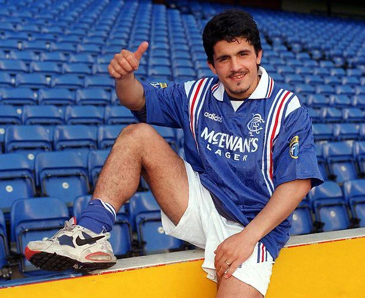 Дженнаро Гаттузо на презентации в качестве игрока «Рейнджерс» весной 1997 года