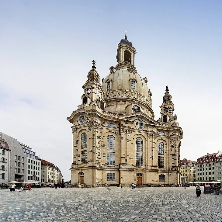 Это собор XVIII века в стиле монументального барокко, созданный по проекту архитектора Г. Бэра. После тотального разрушения исторического здания в 1945 году храм лежал в руинах до самого объединения Германии в конце 80-х гг. XX столетия. Торжественное открытие полностью восстановленной церкви состоялось в 2005 году. Этому предшествовала кропотливая работа реставраторов, которые работали над воссозданием первоначального облика сооружения с 1993 года.