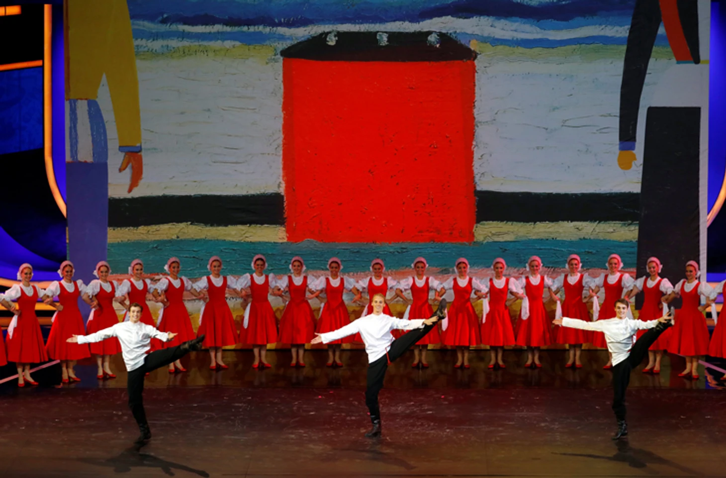 Первой бомбой церемонии оказался русский народный номер и коллаж работ Малевича (художники скрестили «Красный дом» со «Спортсменами») на фоне присядки. Логичное продолжение многолетнего вдохновения тем, из чего высосали всю силу. Heart of Moscow делает значки с Малевичем четыре года. Три с половиной года назад была церемония открытия в Сочи – она переосмыслила всю советскую историю, всех художников, конструктивизм и прочие символы величия.