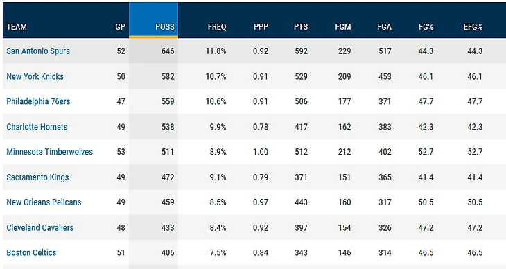 «Сан-Антонио» – практически самая медленная команда НБА, но в ее арсенале важное место занимают передачи на форварда на первых же секундах владения. Едва Олдридж получает неравноценный размен или явное преимущество над соперником в «краске», на него немедленно следует пас.