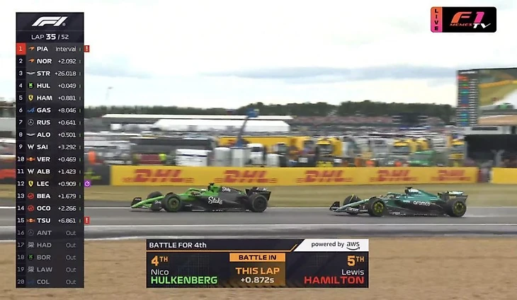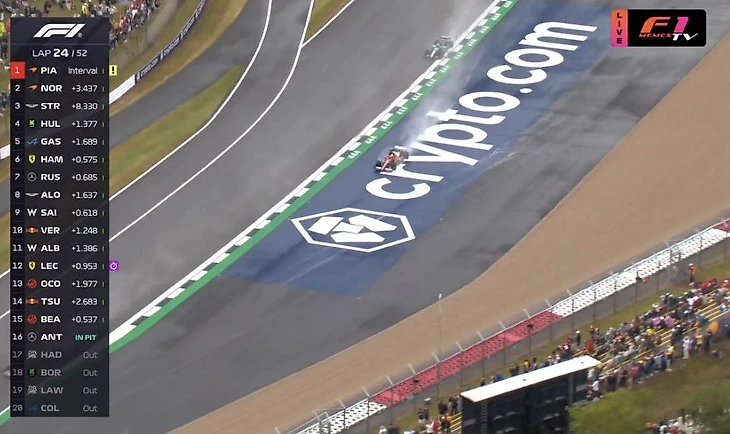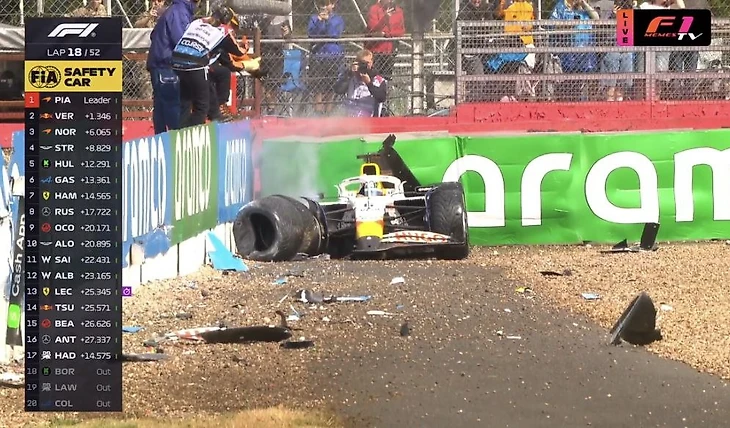 Колапинто вообще не стартует (проблема с силовым агрегатом), а Лоусона выбивает Окон, вызывая виртуальную машину безопасности (под расследованием — UPD: нет наказания):