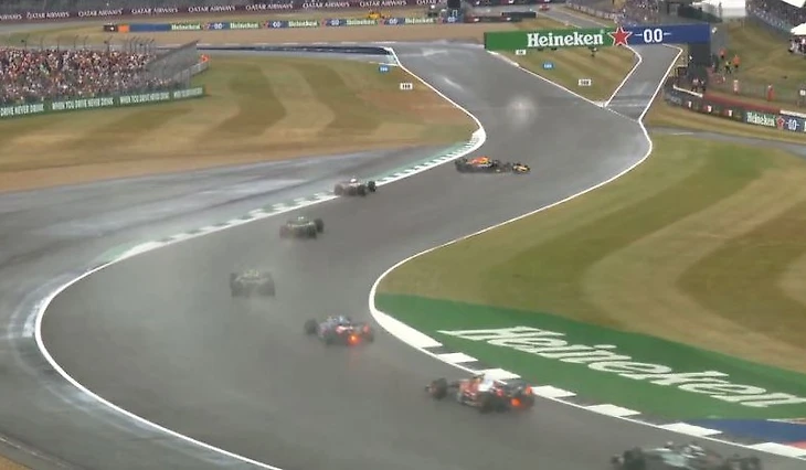 Норрис обошел Ферстаппена, который выехал широко из-за отсутствия держака при сильном дожде: