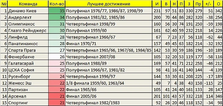1. Динамо Киев(35, полуфинал 1976/77, 1986/87, 1998/99)