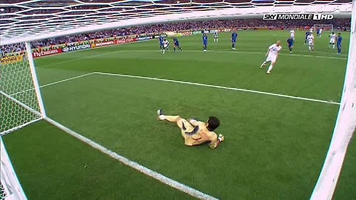 К одиннадцатиметровым французы подошли не только без Зидана, но и без Анри, Виейра и Рибери. Доменек заменил их ранее, без своих лидеров французы не смогли победить итальянцев. Первым бьёт Пирло - точно; отвечает Вильтор - точно. К мячу подходит Матерацци - 2:1; Трезеге бьёт в перекладину - счёт не изменяется. Молодой Де Росси удваивает; Абидал - сокращает; Лысый Дель Пьеро точен; Саньоль тоже. Гроссо подходит к мячу, камера снимает его крупным планом, Фабио разбегается и бьёт точно. Сборная Италии «взрывается» от восторга и становится чемпионом мира. По первому каналу показывают репортаж Ирады Зейналовой, которая сказала, что этот гол в один момент сделал всю страну счастливее.