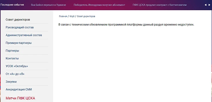 Представляете, если не было бы выигранного кубка и мы сейчас смотрели на сезон, не через призму победы? Это же был бы ужас. Клуб без хозяина, с ген. директором, который как бы есть, но есть ли он на самом деле – непонятно. На сайте spartak.com во вкладке руководство есть генеральный директор, который руководит техническим координатором, финансовым и коммерческим директором, руководителем пресс-службы и руководителем медицинского департамента. Спорт сектор и селекционный сектор отсутствует как класс. Уважаемые коллеги, воспользуйтесь лазейкой армейцев и используйте уникальное словосочетание: «В связи с техническим обновлением программной платформы данный раздел временно недоступен.».