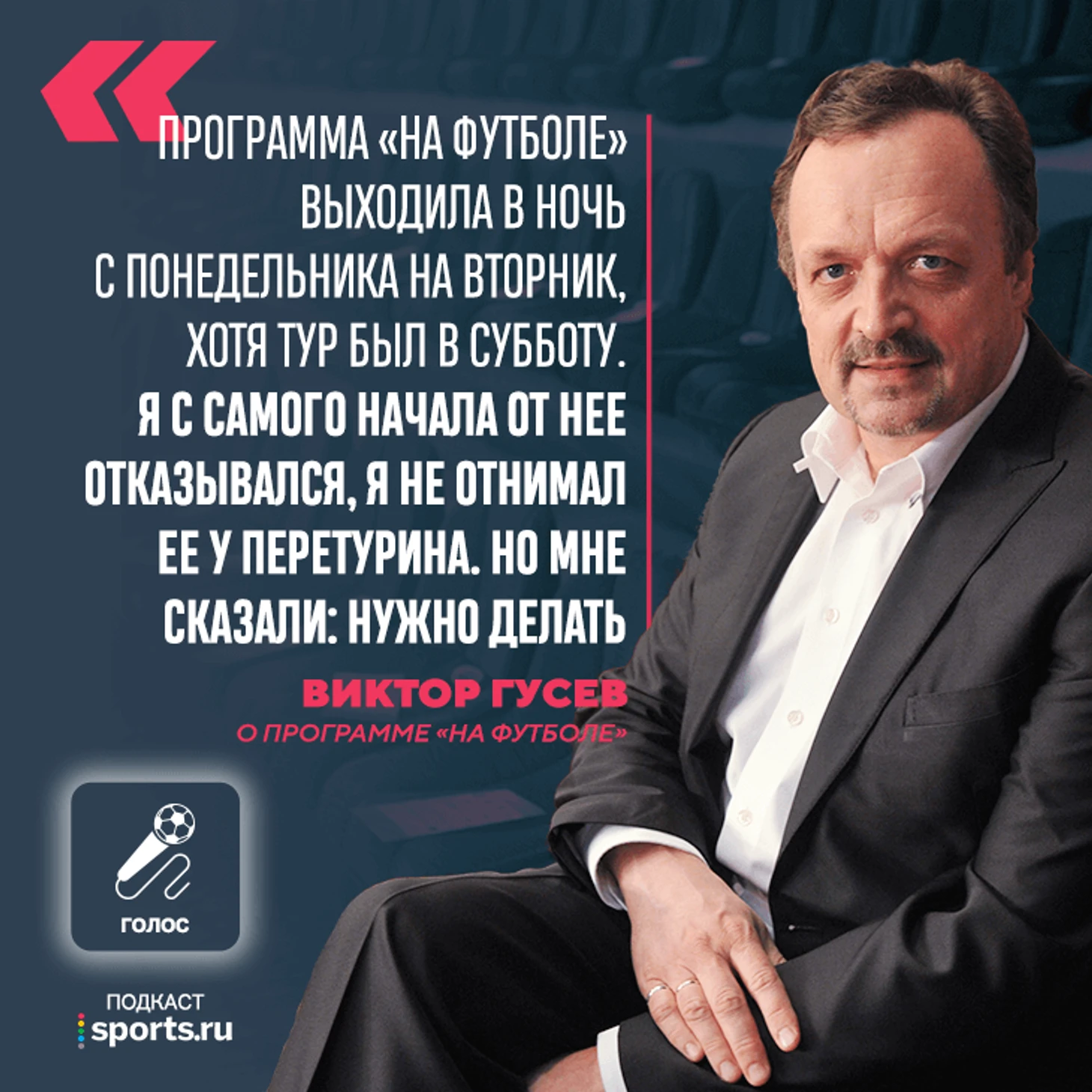 Новый подкаст – интервью Виктора Гусева. Он ненавидит СССР и не хотел делать программу «На футболе»