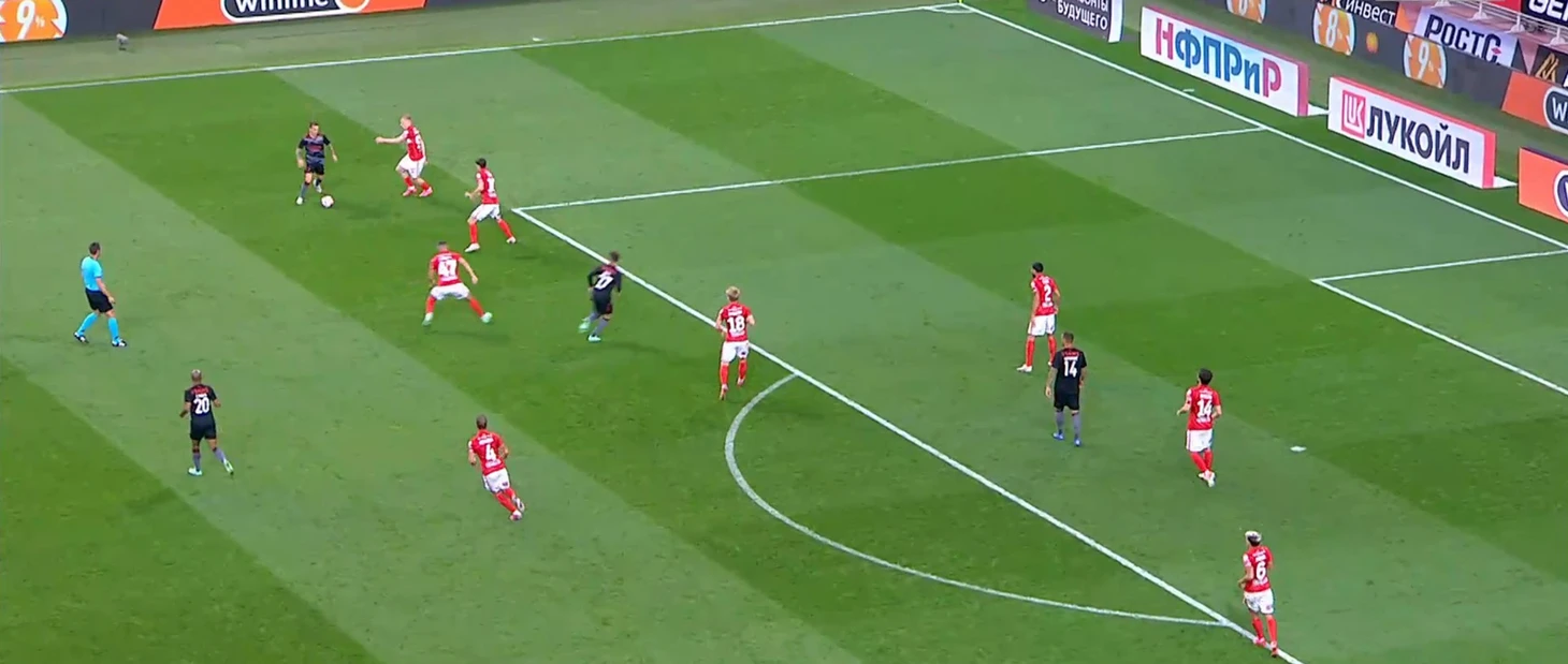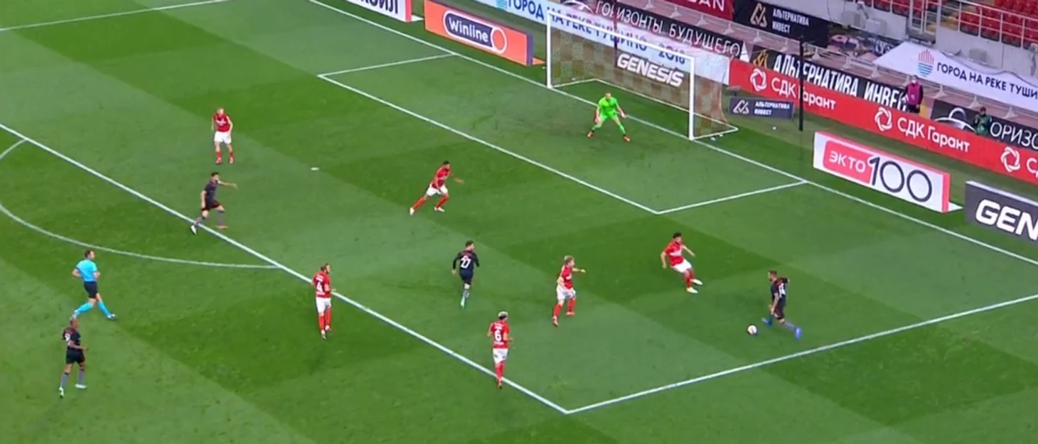В данной ситуации можно предположить, что именно Зобнин или Хендрикс не добежали до опорной зоны и не подстраховали Умярова. Но вопрос всё тот же: а должны ли они были это делать? Скорее всего нет. И Зобнин и Хендрикс (в том числе в данном эпизоде) постоянно следили за центральными полузащитниками и не входили в опорную зону. Наверняка Витория боялся подбора и сказал игрокам Спартака не вжиматься к защитной линии. Момент произошел скорее из-за ошибки Умярова и Аиртона. Если Зобнин и Хендрикс отыграли хорошо, почему статистика на стороне Умярова?