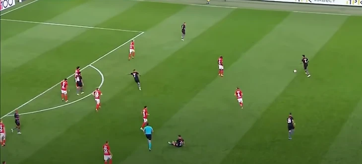 Рассмотрим несколько наиболее критикуемых провалов обороны Спартака по матчу (они почти все были одинаковыми, поэтому сократил до двух). Первый опасный момент Бенфики в матче: