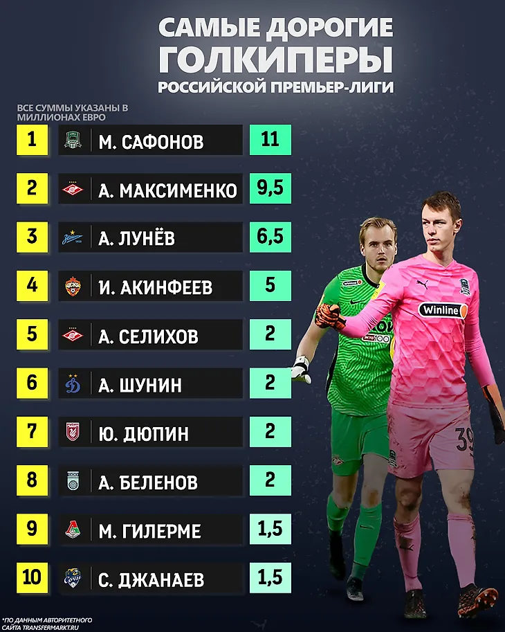 Автор Алексей Антипов Самые дорогие вратари Российской Премьер-лиги