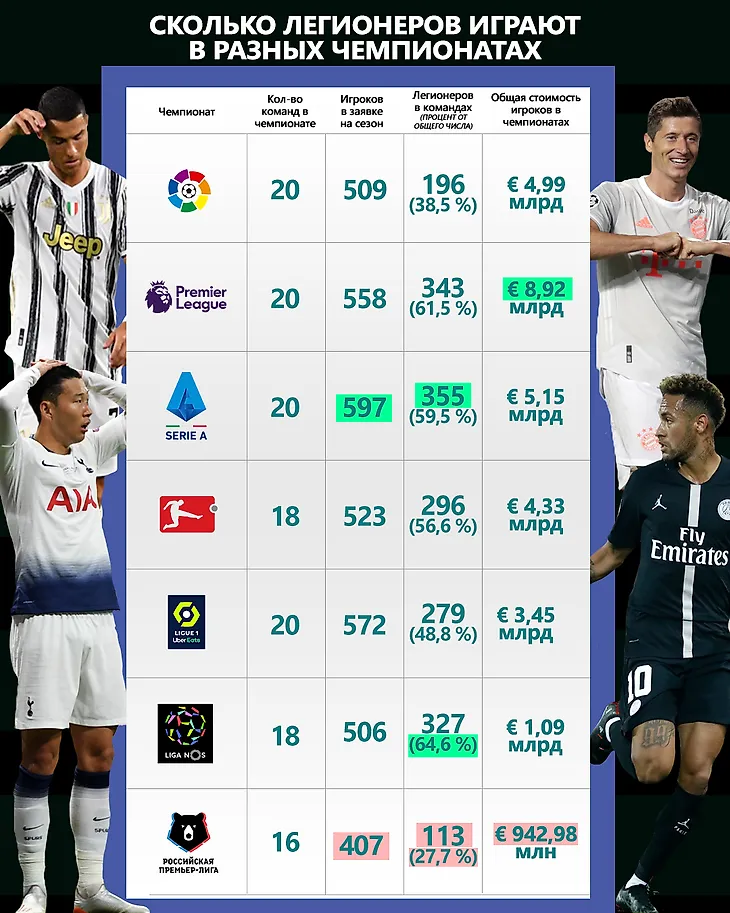 Автор Алексей Антипов В каком чемпионате больше всего легионеров?
