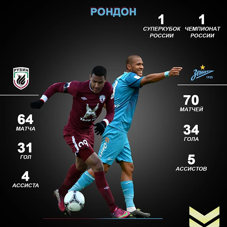Всё тот же 2012 год... В августе венесуэльский нападающий Хосе Саломон Рондон покидает Ла Лигу и пополняет ряды казанского «Рубина», которым тогда руководил Курбан Бекиевич Бердыев уже на протяжении одиннадцати лет. Сумма трансфера составила € 10 млн, контракт был подписан на четыре года. Эта сделка оказалась рекордной и Рондон стал самым дорогим венесуэльским игроком в истории футбола. Саломон провёл два результативных сезона в стане рубиновых, после чего перешёл в «Зенит» за € 18 млн, контракт был согласован на четыре с половиной года. В составе «Зенита» Рондон признавался лучшим игроком месяца, становился вторым в списке лучших бомбардиров чемпионата (проиграв одноклубнику Халку), занимал вторую строчку в списке 33 лучших футболистов чемпионата России. Ну и завоёвывал золотые медали премьер-лиги и Суперкубок России.
