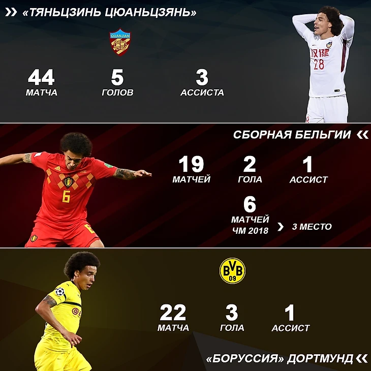 В декабре 2016 года «Ювентус» готов был отдать за Акселя € 6 млн, но деньги сыграли свою роль и спустя некоторое время игрок защищал цвета китайской команды «Тяньцзинь Цюаньцзянь». Сумма трансфера составила € 20 млн, контракт был рассчитан на три года. Зарплата футболиста тоже изменилась в несколько раз и, по данным некоторых СМИ, она была около € 18 млн за сезон. Увы, в Поднебесной чемпион России по футболу взять трофеев не смог. В первом сезоне его клуб завершил выступления на третьей строчке, а второй уже доигрывал без Витселя. Зато на Чемпионате Мира-2018 в составе своей сборной он завоевал бронзовые медали. Сразу после мундиаля Аксель вновь меняет клубную прописку. Дортмундская «Боруссия» выплачивает китайцам € 20 млн и заманивает полузащитника зарплатой в € 10 млн за год. Контракт заключён на четыре года.