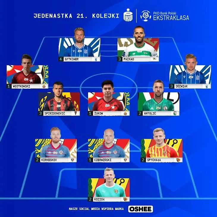О героическом спасении «Шлёнска» на последних минутах матча с «Лехией Гданьск», а также о тяжелой, трудовой победе «Леха Познань» над «Ракувом Ченстохова» вы можете прочесть в двух предыдущих записях в моём блоге. «Краковия» сумела одолеть гдыньскую «Арку» 1:0 в пятничном поединке, благодаря роскошному выстрелу со штрафного Сержиу Ханки. Виктория позволила «полосатым» возглавить турнирную таблицу до вечера воскресенья, пока их не потеснила варшавская «Легия». «Корона Кельце» и «Гурник Забже» не смогли выявить победителя (0:0). Краковская «Висла» понемногу начинает подниматься вверх по таблице. В этот раз жертвой «Белой Звезды» стала «Ягеллония Белосток» (3:0). Одним из голов, отметился Александр Букса, который является родным братом Адама Буксы, экс-игрока «Погони Щецин», который этой зимой перебрался в клуб из МЛС «Портланд Тимберс». Действующий чемпион Польши «Пяст», уверенно разобрался с «Заглембем Любин» 2:0.