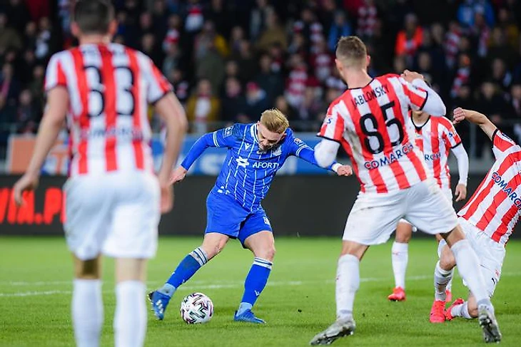"Лех" мог уйти на перерыв ведя намного крупнее, чем в два мяча. У гостей было несколько толковых моментов, которые не закончились ничем серьёзным. Защитный блок "Краковии" раз за разом позволял Гюткьяеру и компании убегать в опасные атаки, одна из которых завершилась курьёзным взятием ворот. Вратарь "полосатых" Михал Пешкович не сумел зафиксировать сферу в руках, после удара головой лучшего снайпера чемпионата- Кристиана Гюткьяера, и по сути забросил её в ворота, тем самым позволив датчанину забить свой 22 гол в текущем розыгрыше Экстраклассы. Участник ЧМ-2018 летом покинет команду в качестве свободного агента, а "паровозы" уже подыскали своему форварду замену. Из второй Бундеслиги был подписан нападающий "Нюрнберга"- Микаэль Исхак. Контракт подписан до конца июня 2023 года.
