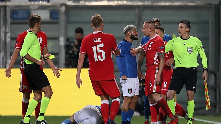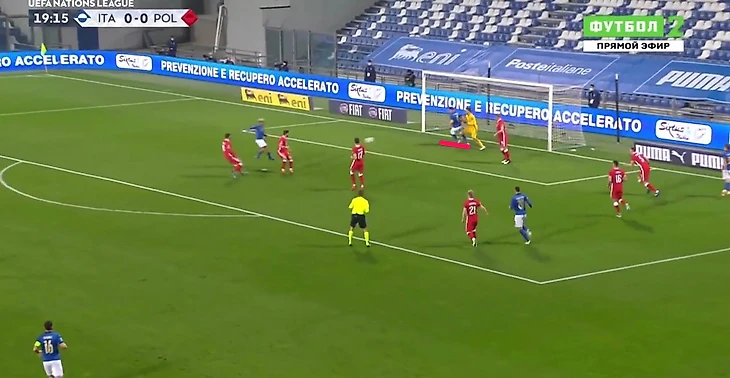 В середине первой половины встречи Польше откровенно повезло, когда Клеман Тюрпен отменил взятие ворот Лоренцо Инсинье. Всему виной активный оффсайд в исполнении Андреа Белотти в момент удара игрока "Наполи".