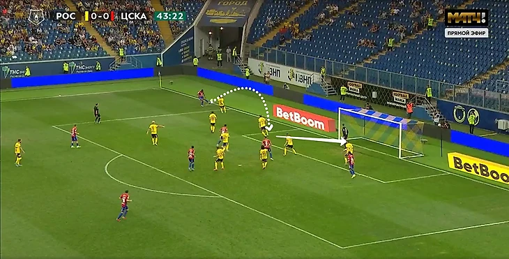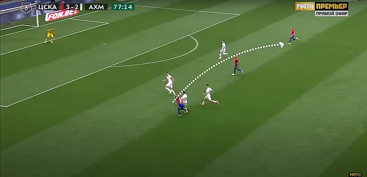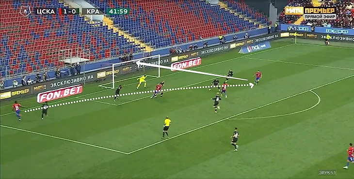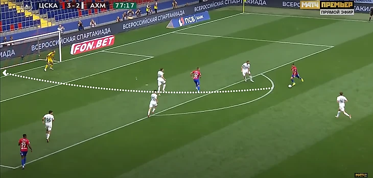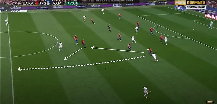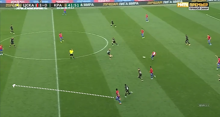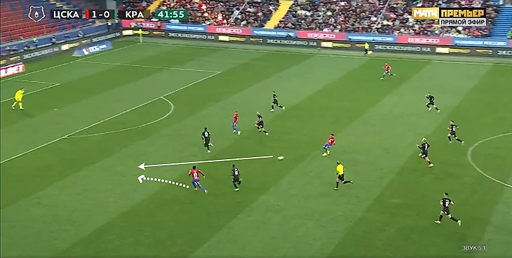 В матче против "Краснодара" Мойзес включился в быстрый отрыв армейцев, создав тем самым ситуацию 4 в 3. Получив мяч в штрафной не стал делать бездумный прострел, а выкатил мяч под удар Милану Гайичу. Лишь сейв Сафонова спас "Краснодар" от гола. Данный эпизод полностью соответствует игровой философии Федотова, где оба латераля включаются в быструю атаку и один замыкает передачу другого.