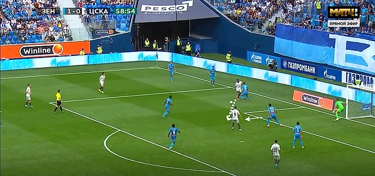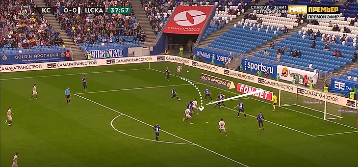 В матче против "Крыльев Советов" Мойзес с "места" обыгрывает защитника на бровке, прокидывая мяч к лицевой линии и делает точную передачу на Хорхе Карраскаля, но последний из убойной позиции не попадает в ворота.